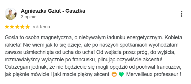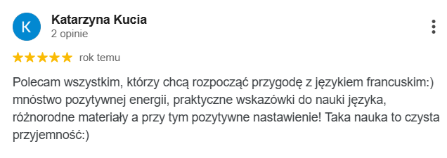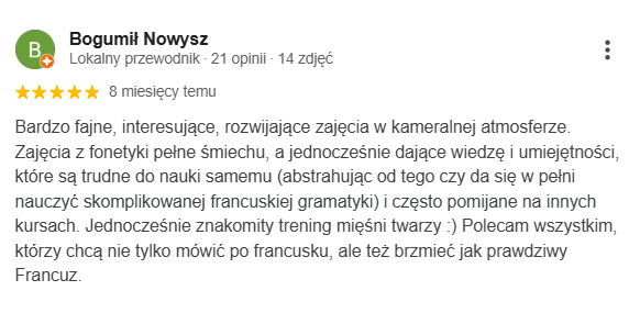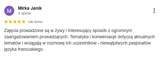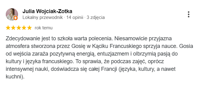 Tutaj wiedza i francuska pasja łączy się z pozytywną energią, tworząc atmosferę niezapomnianej przygody z językiem francuskim i ekscytujących odkryć. Odkryj nasze kursy języka francuskiego, które pomogą Ci mówić po francusku z lekkością i pewnością siebie!